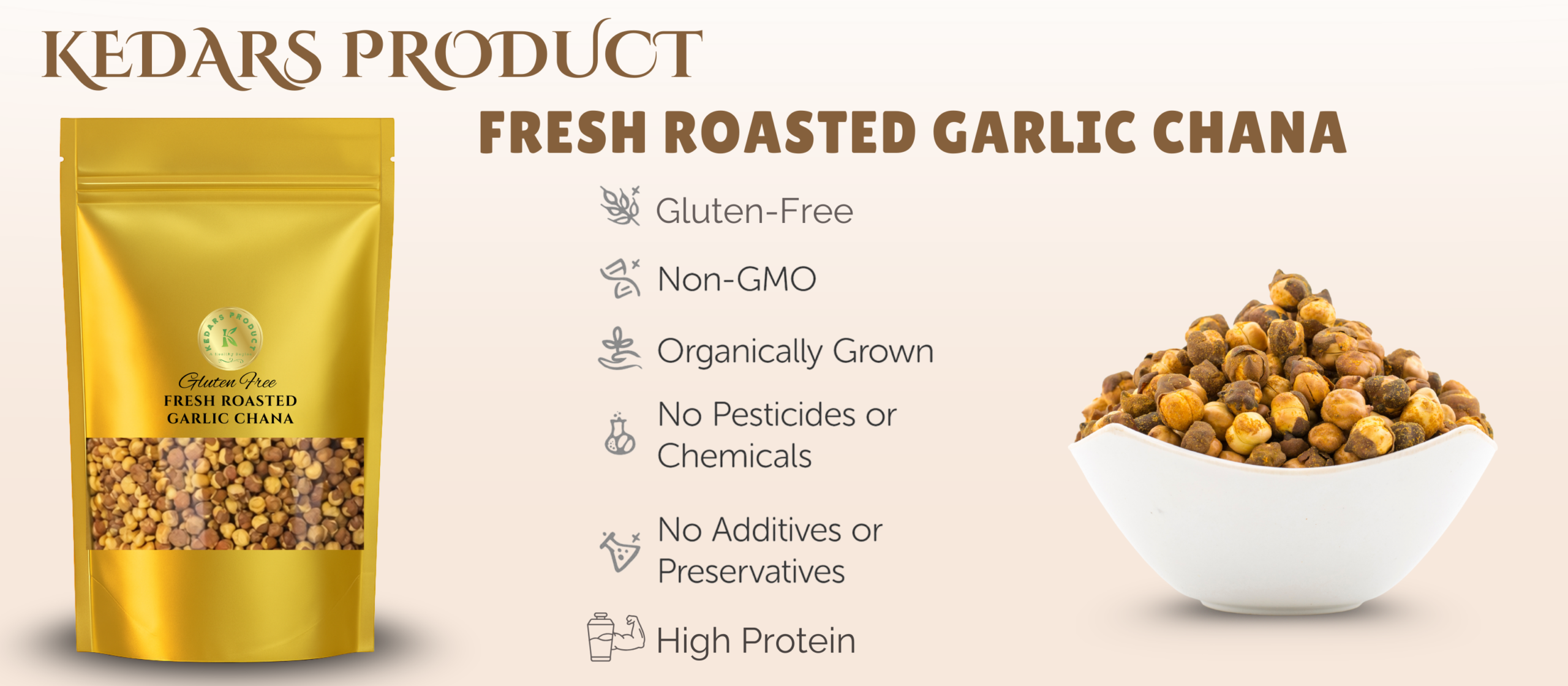KEDARS PRODUCT Garlic Roasted Chana – Fresh, Crunchy, Protein & Fibre Rich 200gKEDARS PRODUCT Garlic Roasted Chana – Fresh, Crunchy, Protein & Fibre Rich 200g