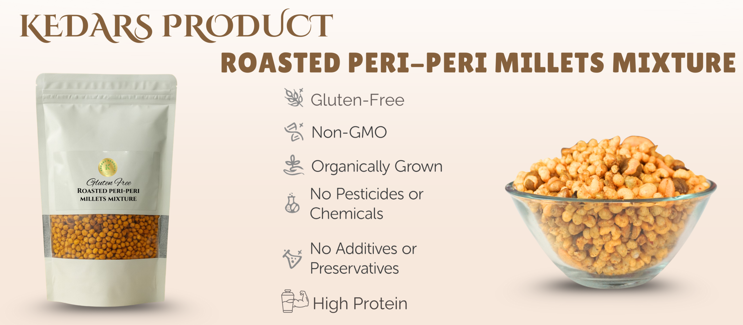 KEDARS PRODUCT Roasted Peri-Peri Millets Mix – Crunchy High Fibre Snack 100g