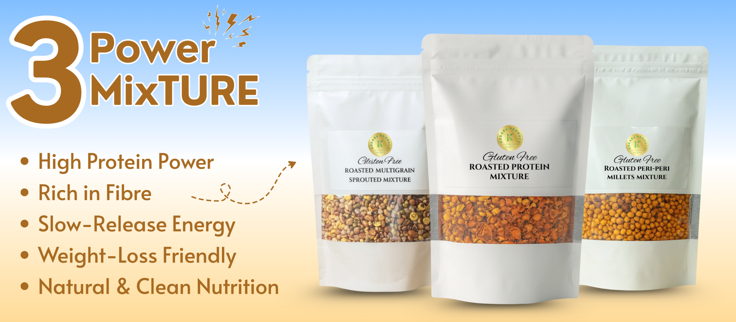 ⭐ “A wholesome roasted combo of sprouted grains, millets, and protein mix for balanced nutrition, sustained energy, and smart snacking.”
