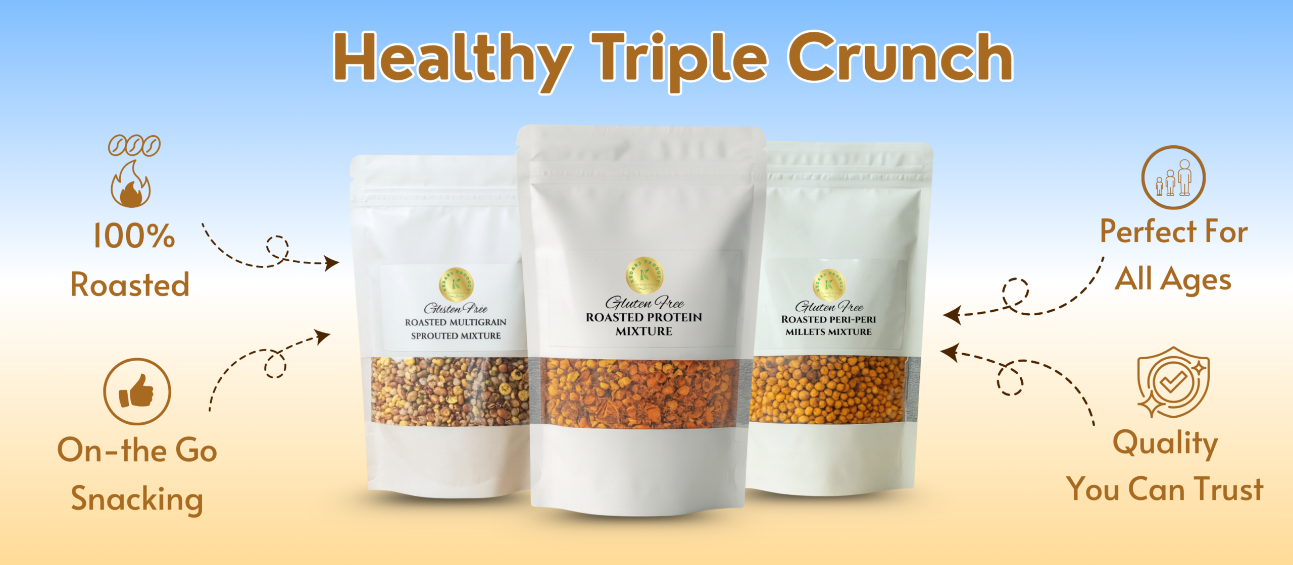 KEDARS PRODUCT Super Healthy Roasted Triple Combo – Sprouted, Millet & Protein Mix KEDARS PRODUCT Super Healthy Roasted Triple Combo – Sprouted, Millet & Protein Mix
