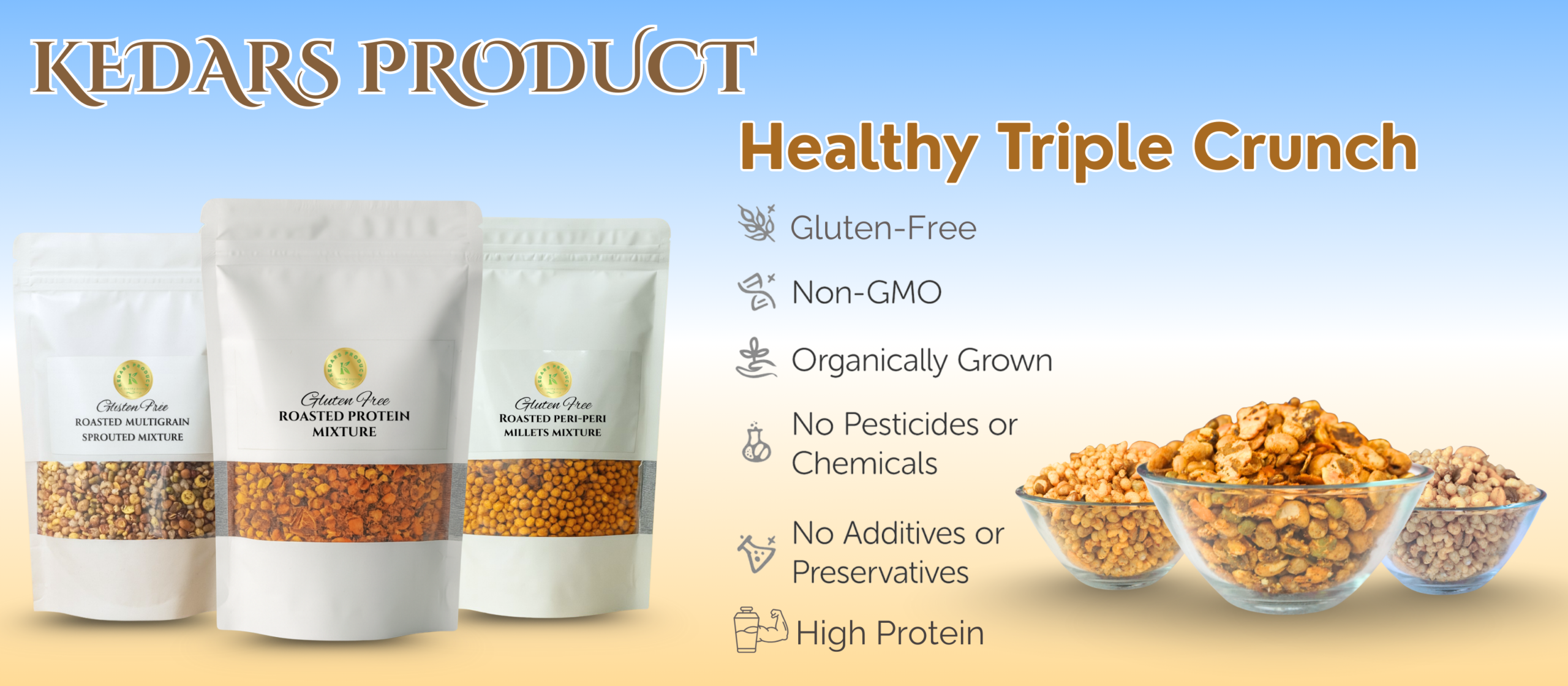 KEDARS PRODUCT Super Healthy Roasted Triple Combo – Sprouted, Millet & Protein MixKEDARS PRODUCT Super Healthy Roasted Triple Combo – Sprouted, Millet & Protein Mix