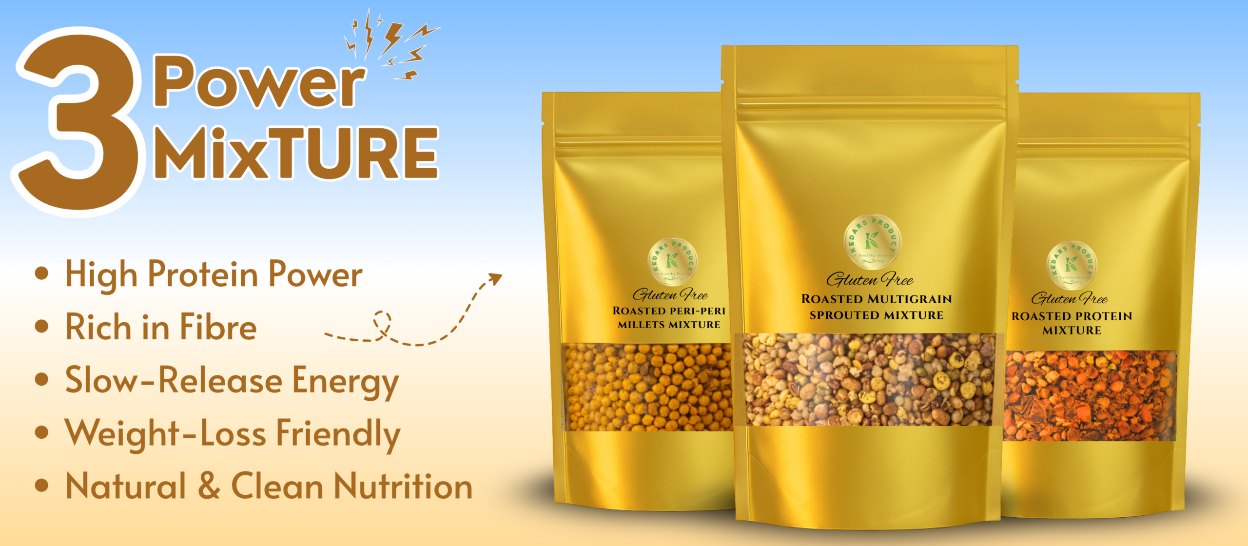 KEDARS PRODUCT Super Healthy Roasted Triple Combo – Sprouted, Millet & Protein Mix