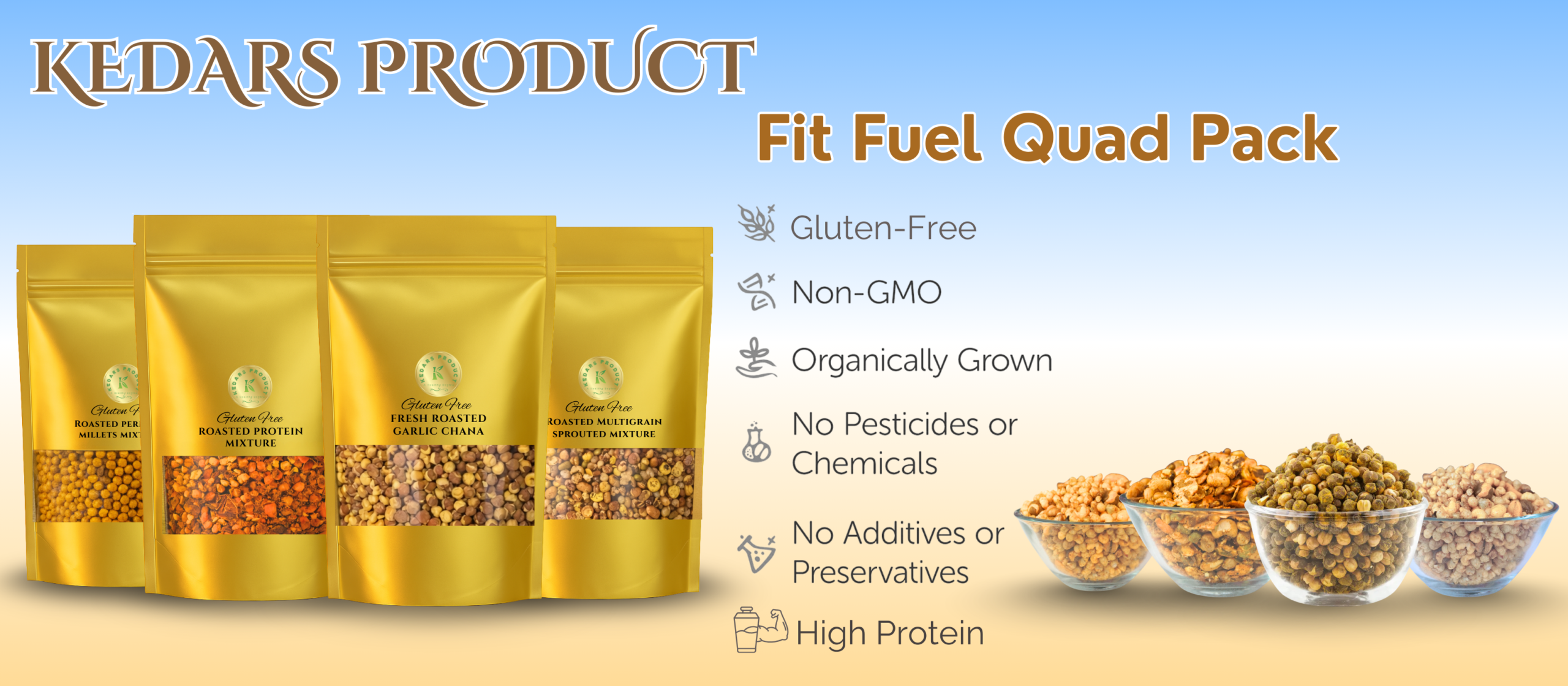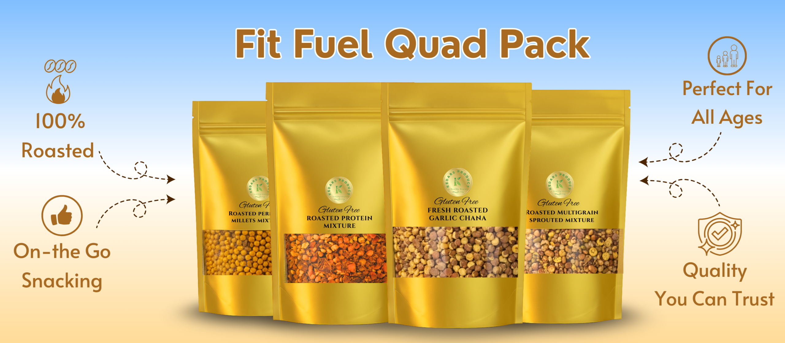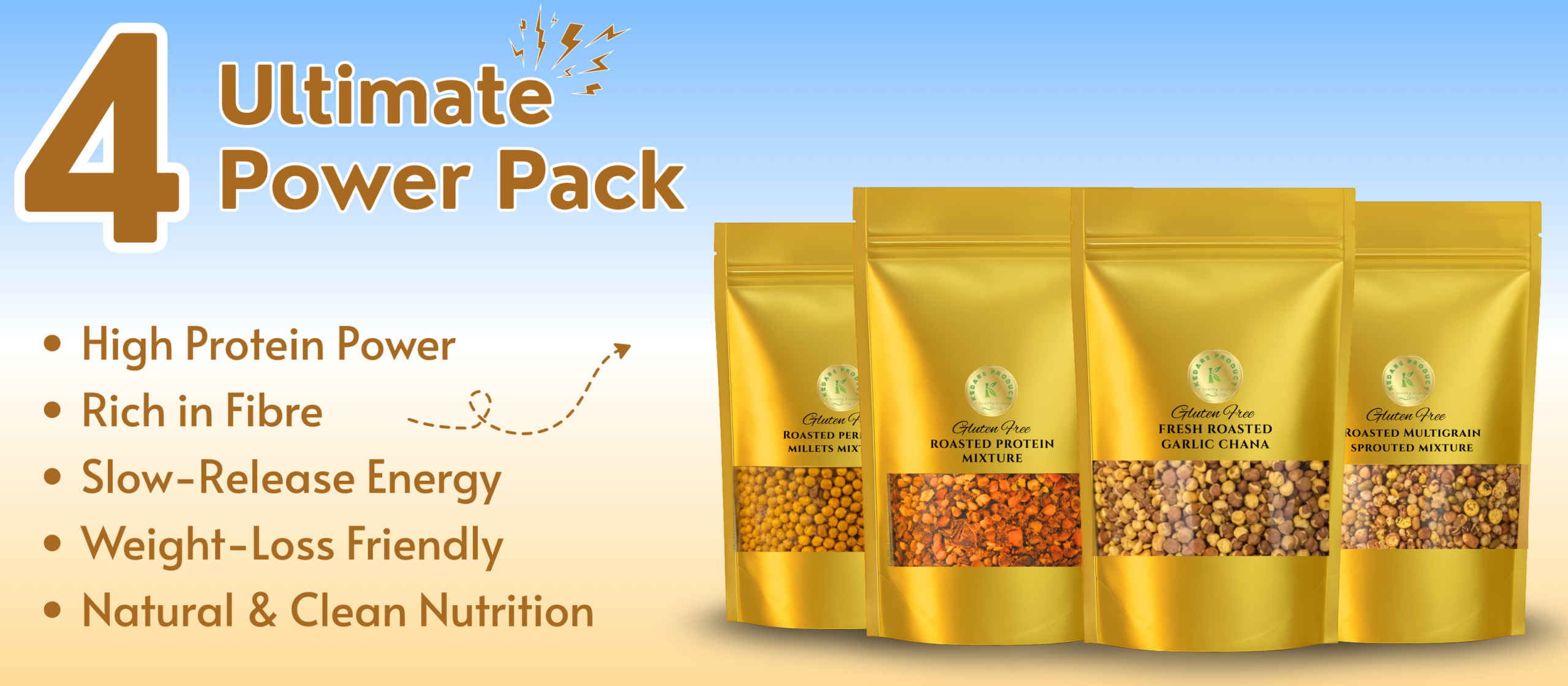 KEDARS PRODUCT Ultimate Roasted Nutrition 4 Pack Combo – Sprouted, Millet, Protein & Garlic ChanaKEDARS PRODUCT Ultimate Roasted Nutrition 4 Pack Combo – Sprouted, Millet, Protein & Garlic Chana