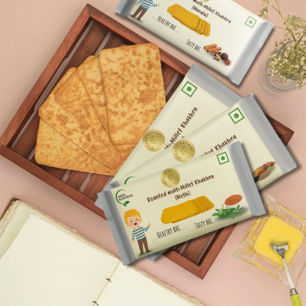 Roasted Hand Made Mix Millet Khakhra | Gluten-Free Millet Snacks, No Palm Oil | Healthy Energy-Rich Ragi Crisps for Kids & Adults | Wholesome Ready-to-Eat Snacks – 50 gram